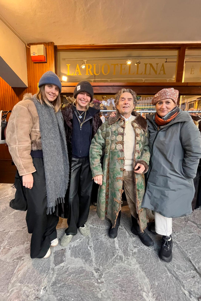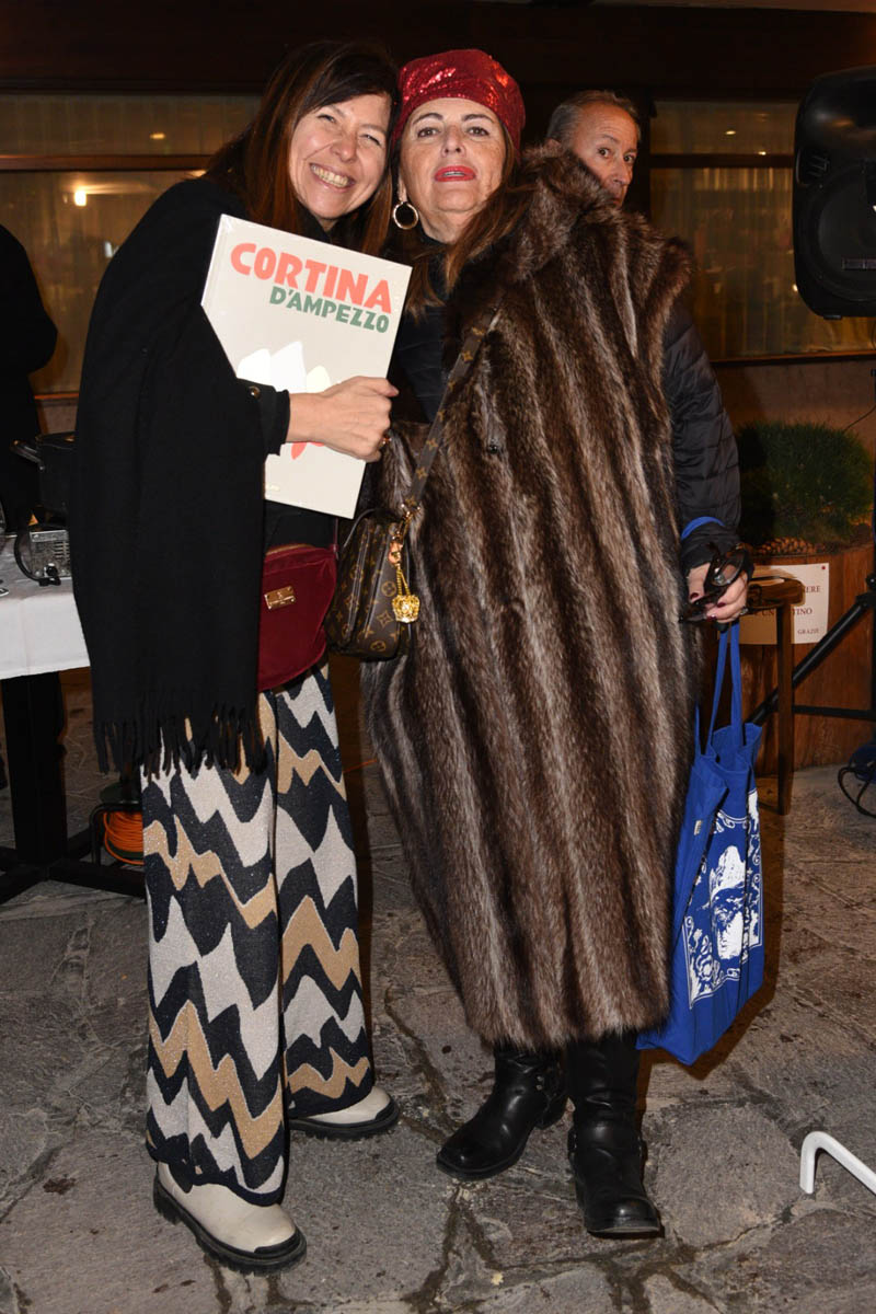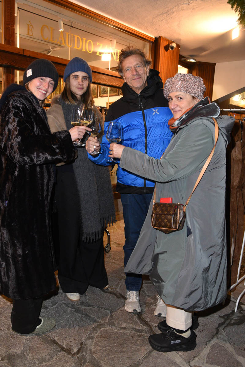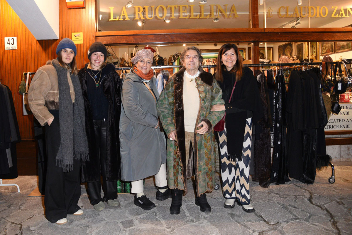 Claudio Zanettin, Marilù Rebecchini, la principessa Marina Pignatelli, Maria Dolores de Barrondo, Giovanna Giol, Marita Folonari, Donatella Girombelli, la fotoreporter Francesca von Witzmann, Paola Benelli in Mori, Franca Giuliani Ricci, la contessa Gemma Marzotto, Adriana Sartogo, Vannella d'Amelio in Marsoni, la Contessa Anna Marzotto, la Principessa Blazena Torlonia (nuora dell'infanta di Spagna), Paola Jarach, Giuliana Brino Bet, Gabriella Farinon, Teresa Benetton, Carla Bruni (moglie di Liborio Falanga), Ornella Vanoni e "Paolona" Della Valle, festeggiano la Befana con il tradizionale peperoncino in pelle dell'artista Beatrice Fabi, regalato alle Befane Piccanti da Claudio Zanettin il giorno della befana. Cortina d'Ampezzo 6 gennaio 2025.