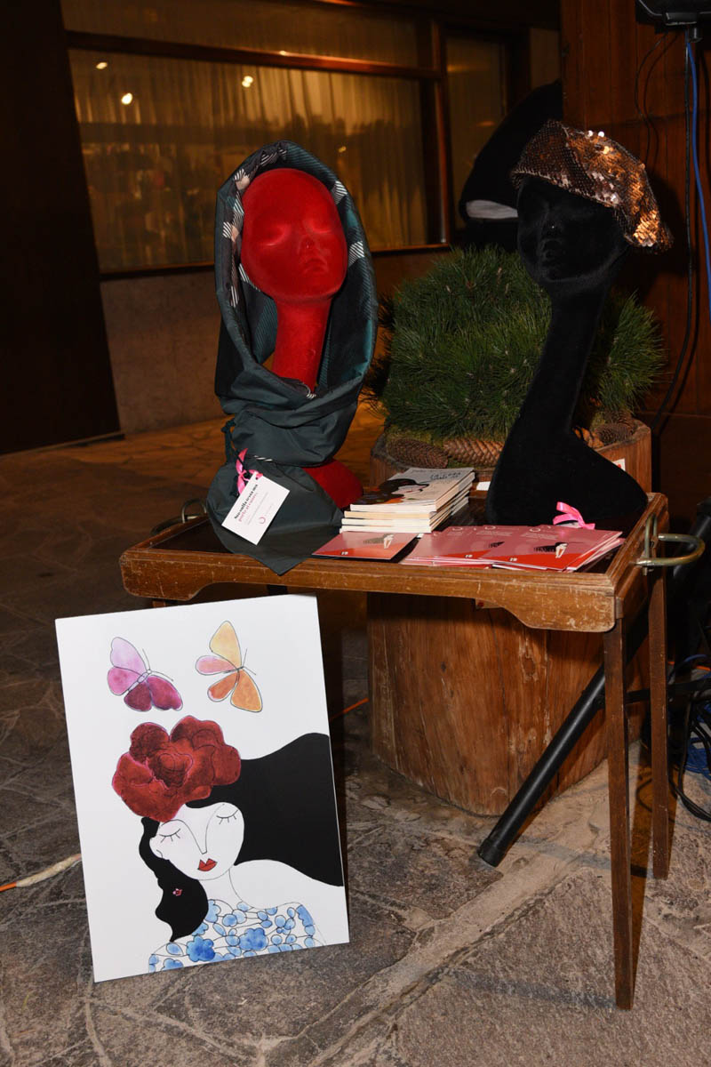 Livia Campilli malagò (con gli occhiali) e Marilù Rebecchini con un gioiello simbolico, in pelle realizzato dall'artista Beatrice Fabi ragalatoLe da Claudio Zanettin.