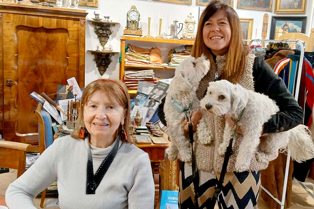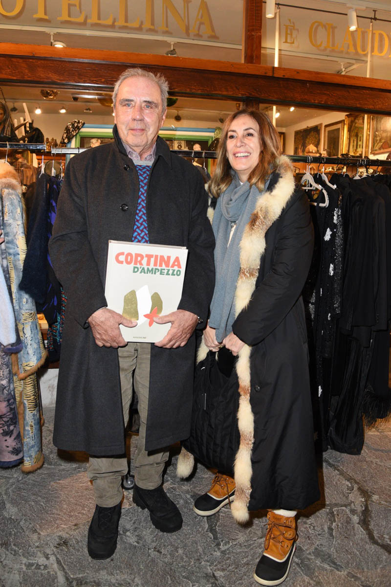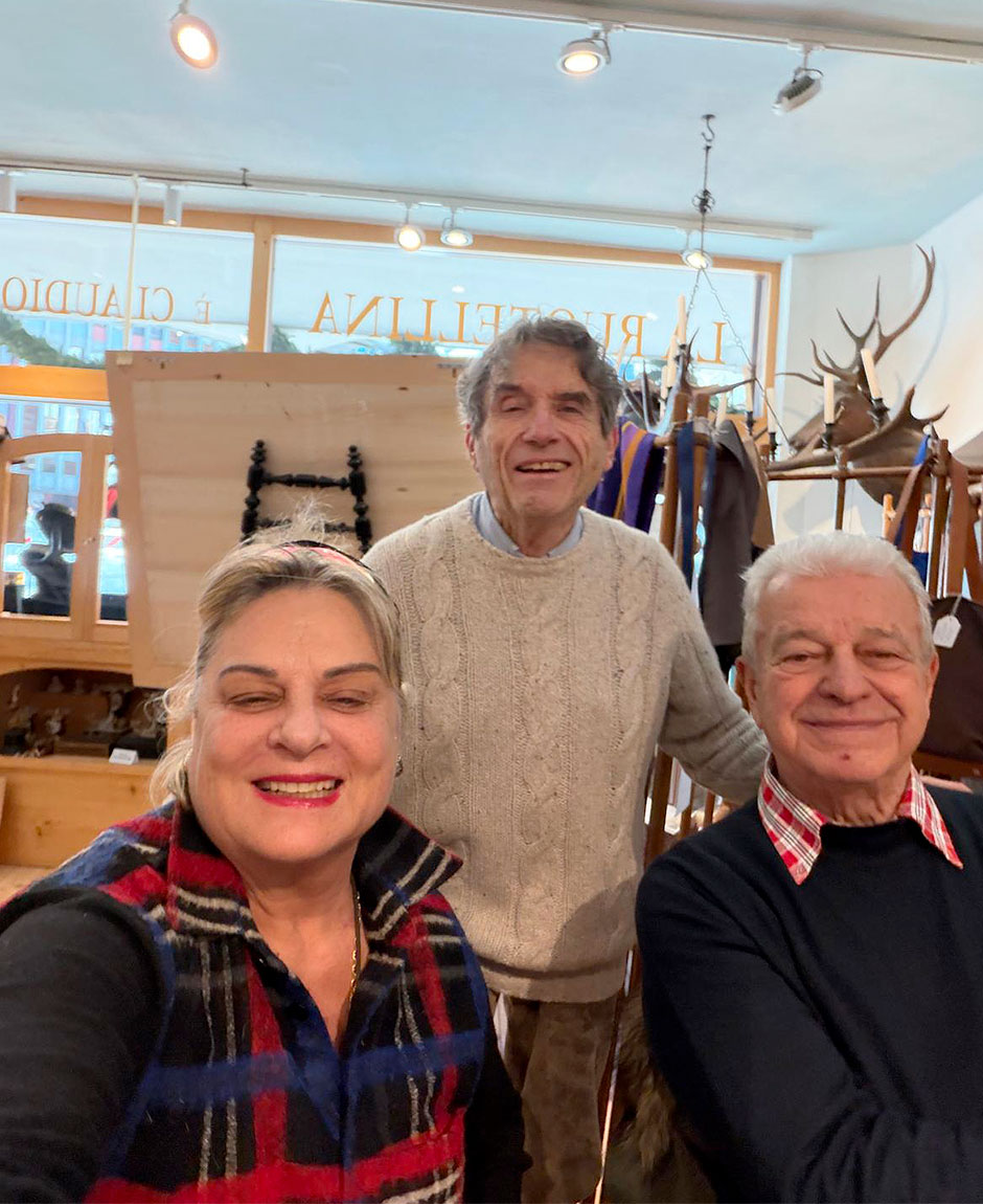 Paola Buratto col marito Fernando Caovilla nel negozio di Claudio Zanettin a Cortina (autoscatto di Paola Buratto Caovilla).
