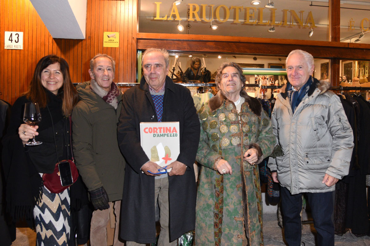 Nella foto grande centrale: Tra gli ospiti del cortinese Claudio Zanettin e di Liborio Falanga c'erano Franca Giuliani Ricci (a sinistra) e Gunde Oberhammer.