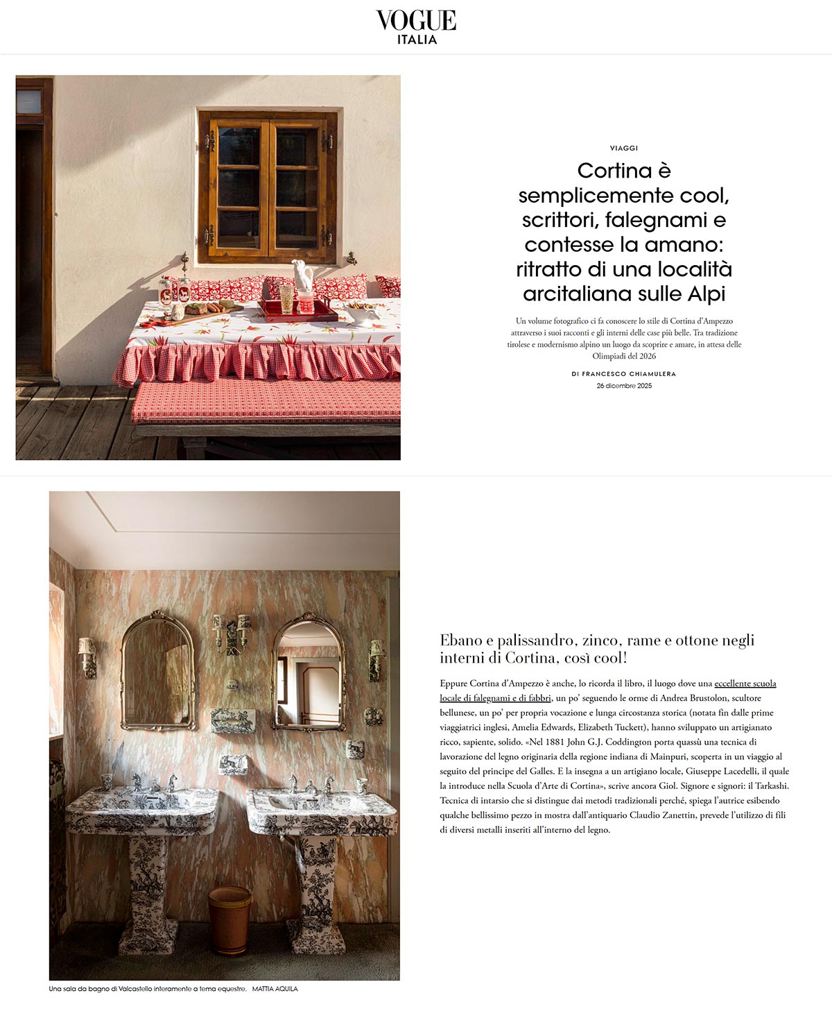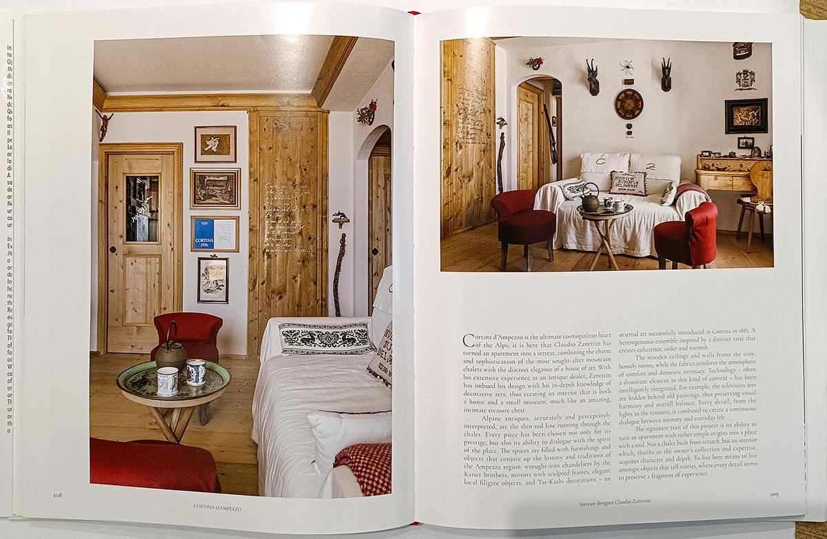 Un volume fotografico ci fa conoscere lo stile di Cortina d'Ampezzo attraverso i suoi racconti e gli interni delle case più belle. 26 dicembre 2025. Anche su Vogue si parla di Claudio Zanettin.